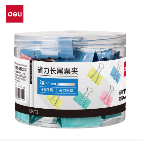 得力/deli DP702省力长尾票夹2夹宽41MM(彩)(24个/筒)