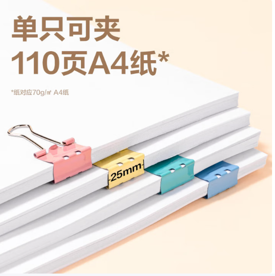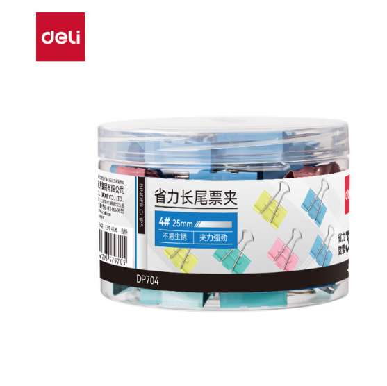 得力/deli DP704 省力长尾票夹4夹宽25MM(彩)(48个/筒)