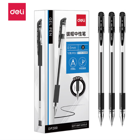 得力/deli DP200 拔帽中性笔0.5mm子弹头(黑)(支)