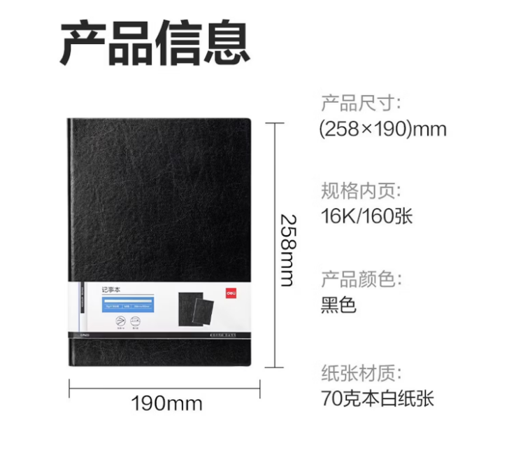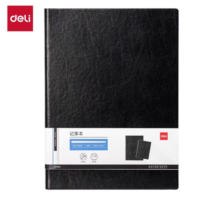 得力(deli) 办公皮面本 DP403 16K-160张 黑 1本