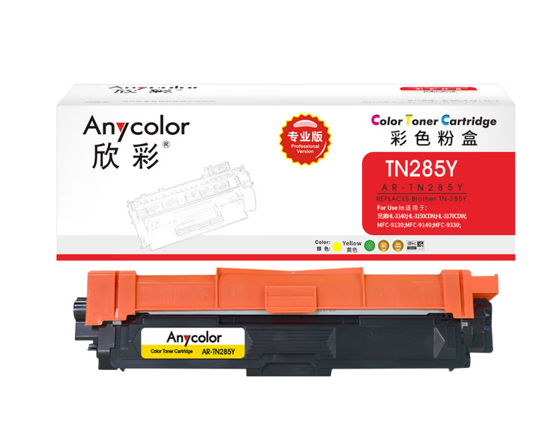 欣彩 AR-TN285Y黄色粉盒 专业版 适用兄弟TN-285 HL-3140 3150CDN 3170CDW MFC-9140CDN 9330CDW激光打印