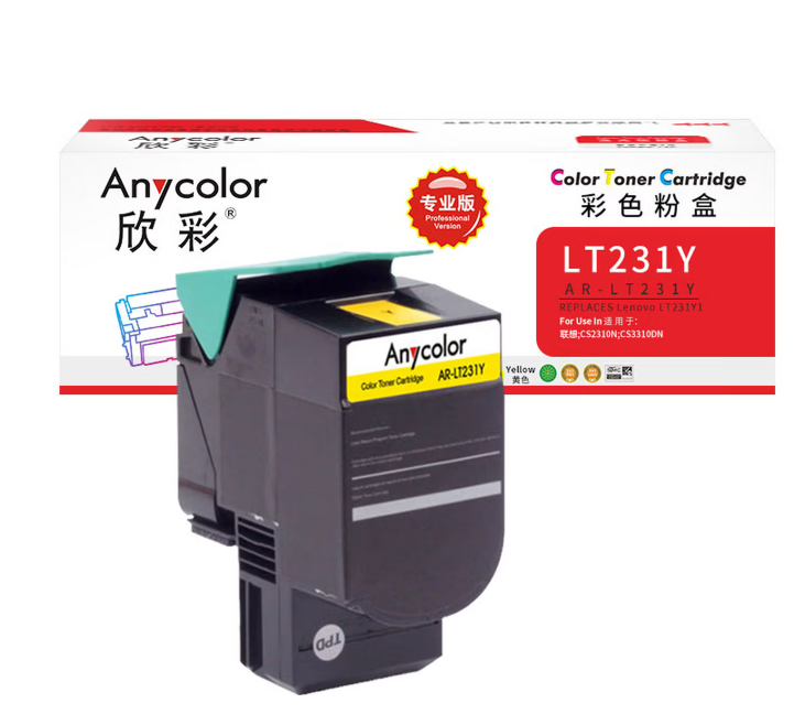 欣彩 粉盒 AR-LT231Y 专业版 适用于联想CS2310N CS3310DN 打印页数3000页 黄色